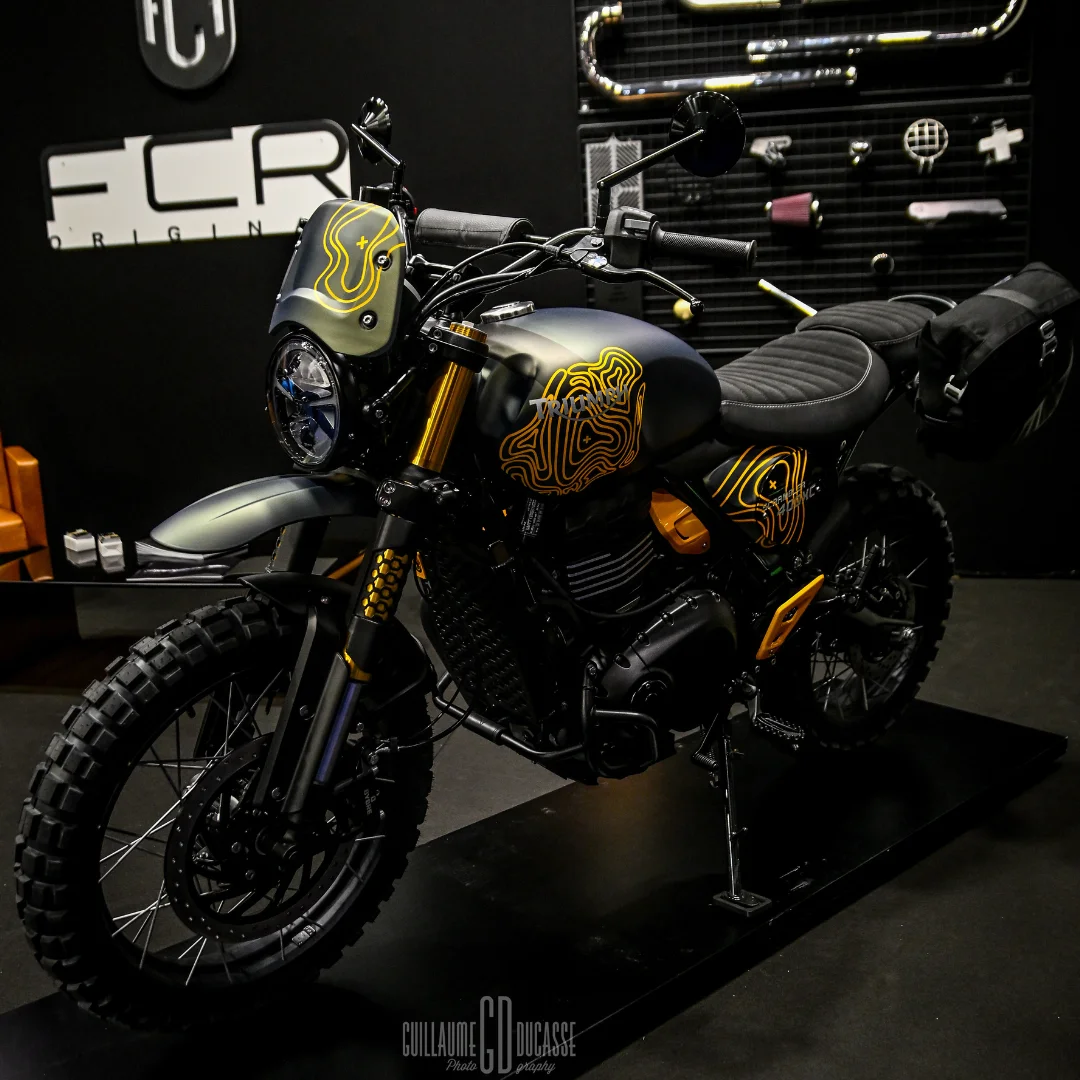 La préparation Triumph Scrambler 400 Escape développée par l’atelier notre atelier illustre une vision complète du scrambler moderne : une moto simple, robuste et prête à s’échapper des routes traditionnelles. Mais au-delà de cette préparation, ce projet a également permis de développer une série d’accessoires dédiés à la Triumph Scrambler 400. À travers FCR Accessoires, ces pièces ont été conçues pour permettre à chaque pilote de personnaliser sa moto tout en améliorant sa protection, sa polyvalence et son caractère aventure.